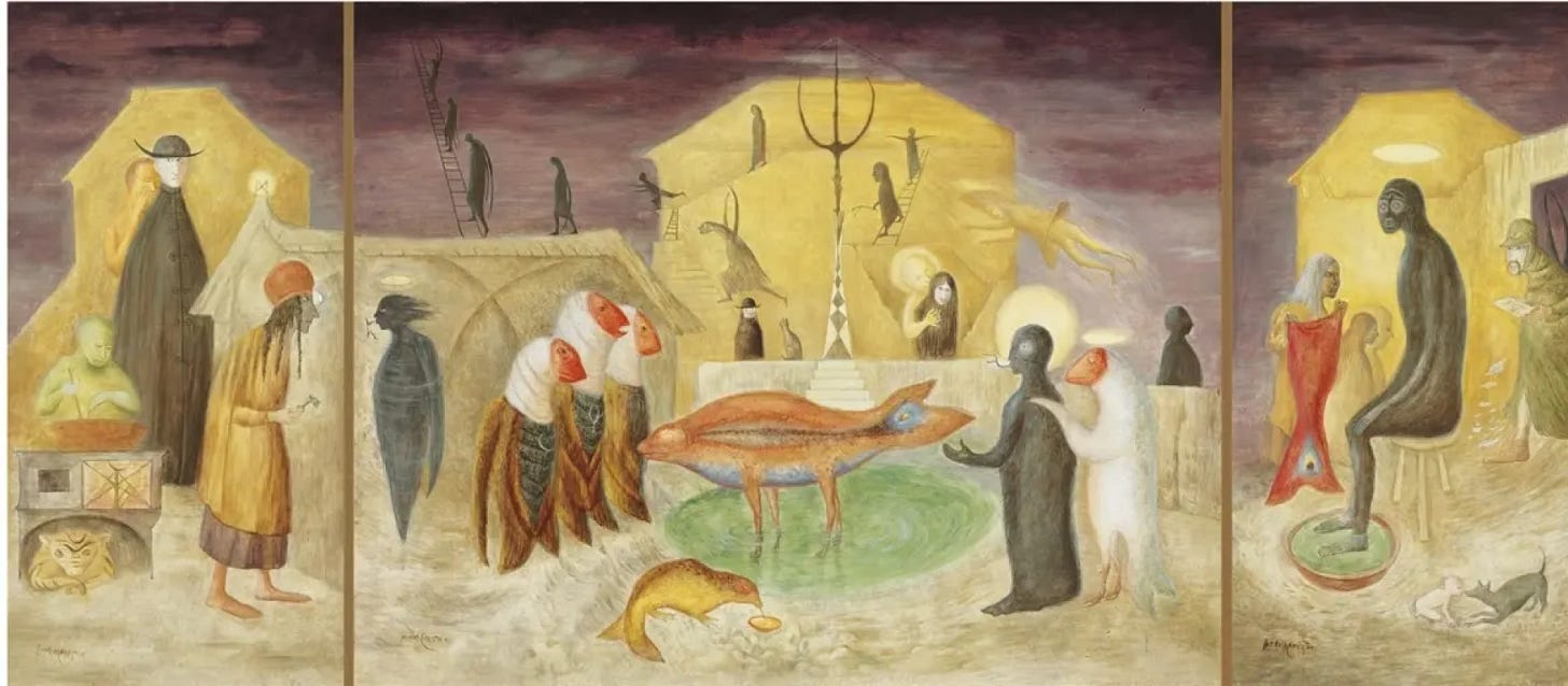 Leonora Carrington, Nativity Triptych, 1989 (via Mutual Art)